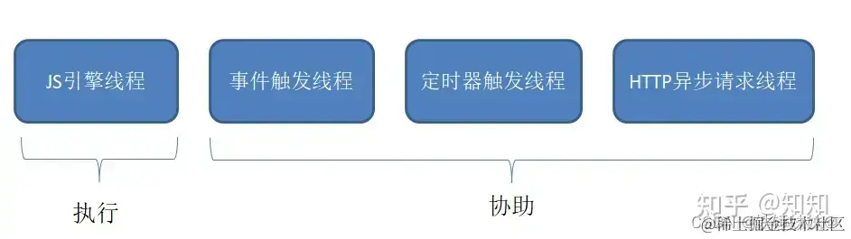 后面三个只是协助,只有 JS 引擎线程是真正执行的。