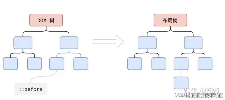 display:none的节点没有几何信息,因此不会生成到布局树;又比如使用了伪元素选择器,虽然 DOM 树中不存在这些伪元素节点,但它们拥有几何信息,所以会生成到布局树中。还有匿名行盒、匿名块盒等等都会导致 DOM 树和布局树无法一一对应。