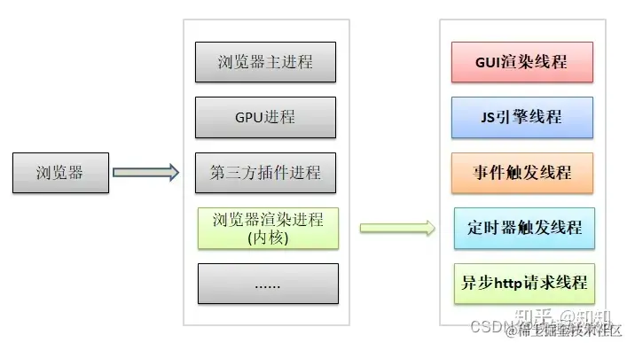 可以看到,里面的JS引擎是内核进程中的一个线程,这也是为什么常说JS引擎是单线程的。