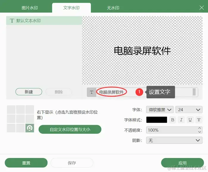 步骤3:软件提供了水印添加功能,可以添加文字水印与图片水印,并可以选择水印的位置和大小,方便进行修改。