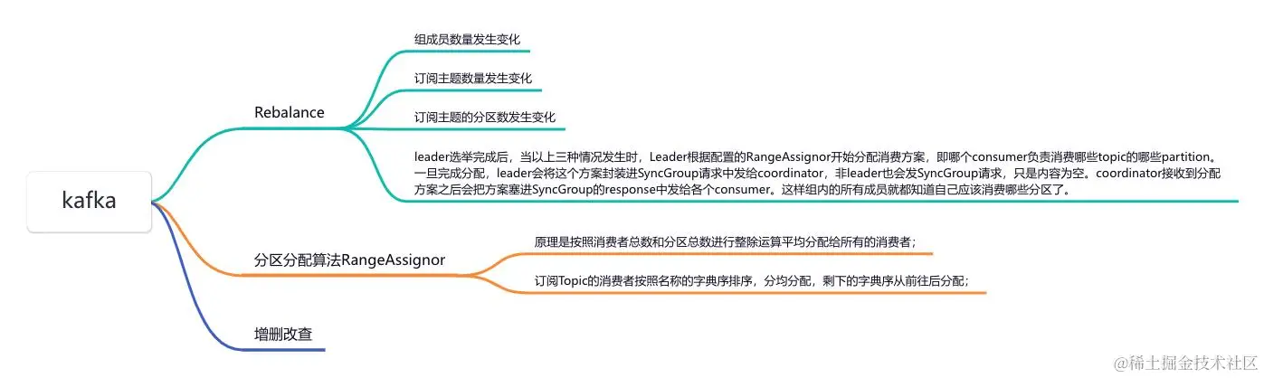 当以上三种情况发生时,Kafka会进行Leader选举,然后根据配置的RangeAssignor算法开始分配消费方案。下面我们详细看看这个流程: