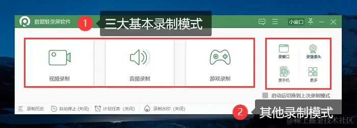 步骤2:进入软件首页,根据您的需求选择录制模式。这里将以常用的 【视频录制】 模式进行演示。