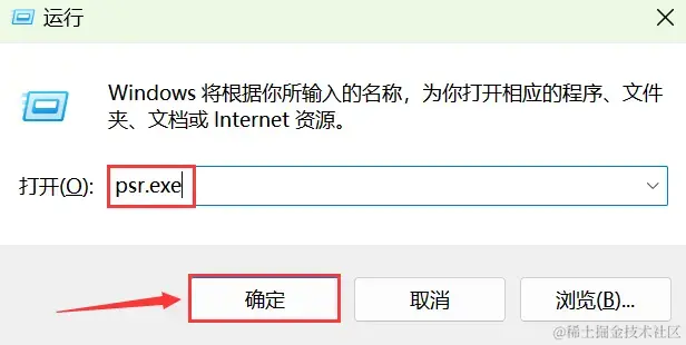 步骤2:在输入框中一般就有 【psr.exe】 ,如果没有的话,您也可以切换到小写状态下进行手动输入,之后点击【确认】即可进入录制。
