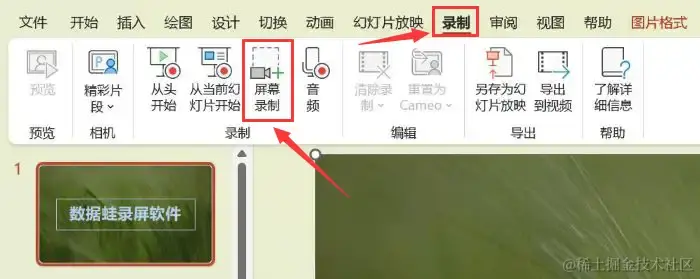 PowerPoint也可以进行录制,适合教学讲学时使用。不过它录制的视频也会存在声画不同步的现象,所以如果您对录屏要求较高还是建议您使用数据蛙录屏软件。使用PPT录屏操作步骤如下: