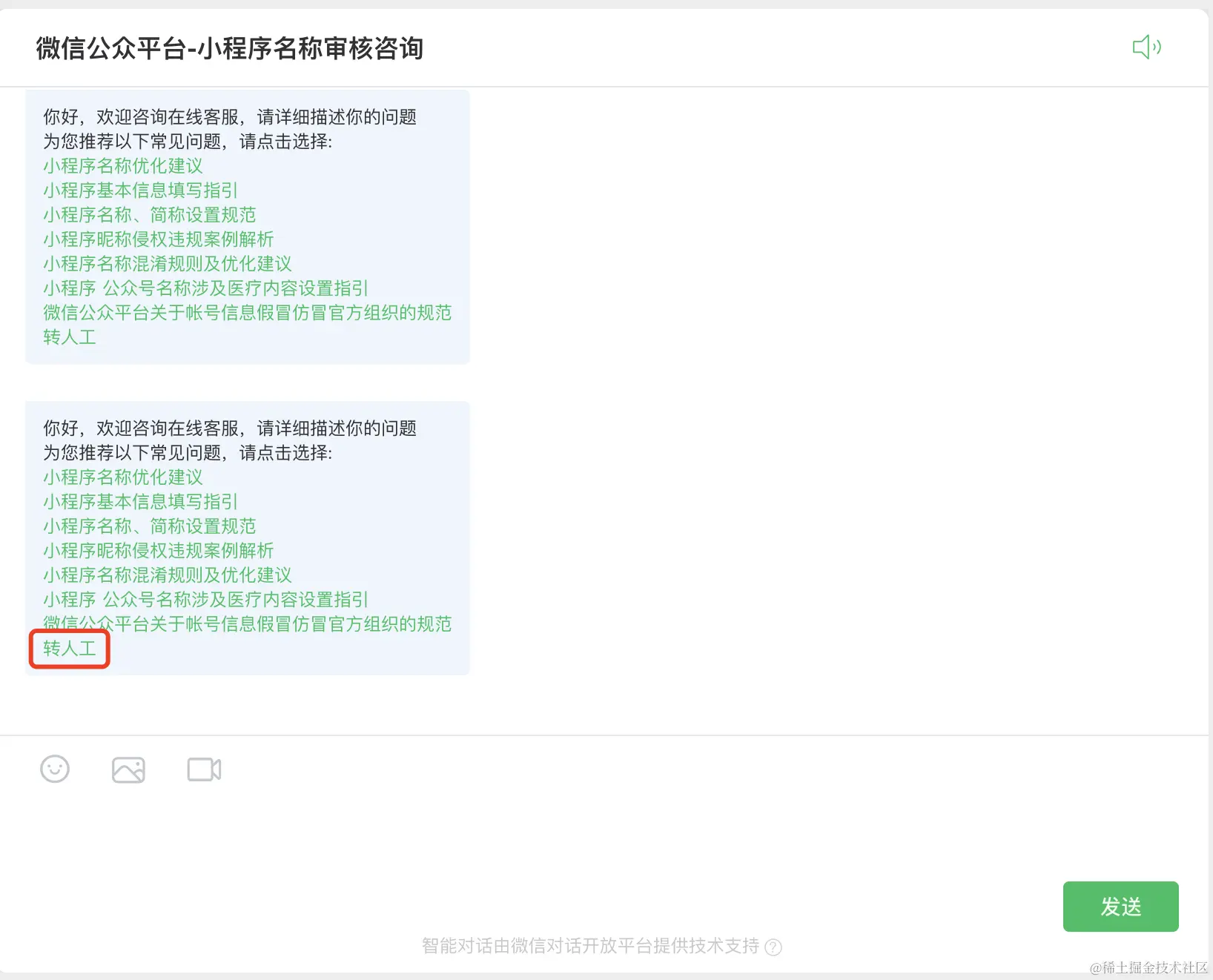 第二天上午忙完大概 10.30 我就进了客服咨询,直接点了转人工,大概等待了一会便有客服接入了,然后就有了以下对话: