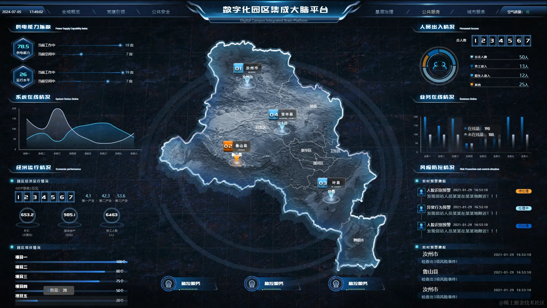 首先,在制作可视化页面之前,需要明确页面要展示的城市运行数据和信息种类,这些内容的确定将直接影响后续的数据收集和处理等工作。在制作智慧城市可视化页面时,我们可以选择展示以下种类的城市运行数据: