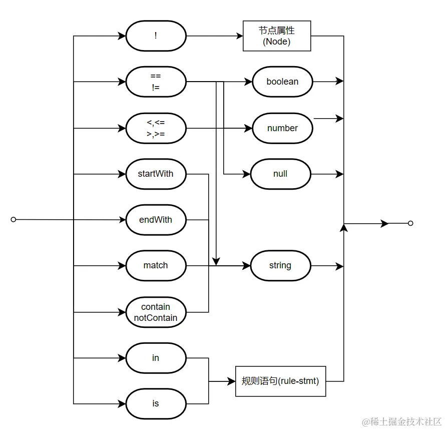 例如:筛选出出现在赋值表达式左侧的变量访问节点,且赋值表达式的右侧为方法调用节点。规则中的
