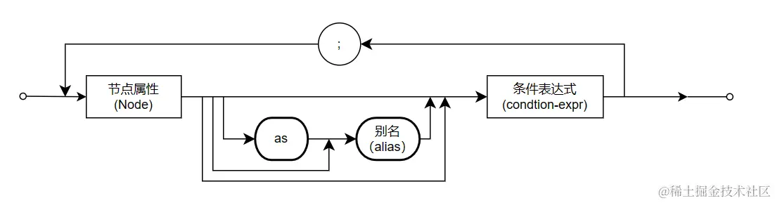 as 别名:给要查找的节点一个别名,便于后面的使用。as 可以省略。别名的命名规则如下: