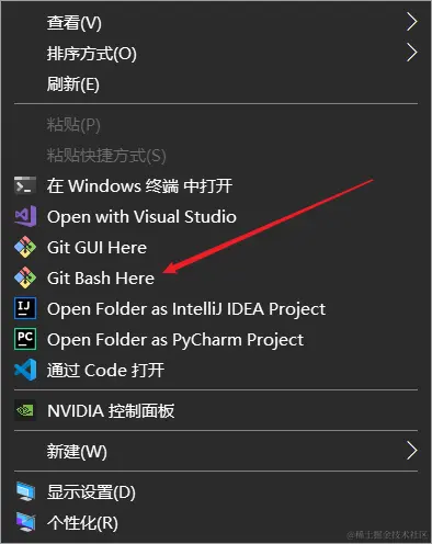 然后点击 Git Bash Here,