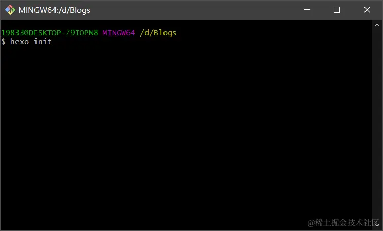$ hexo init # 该命令完成 hexo 在本地博客目录的初始化