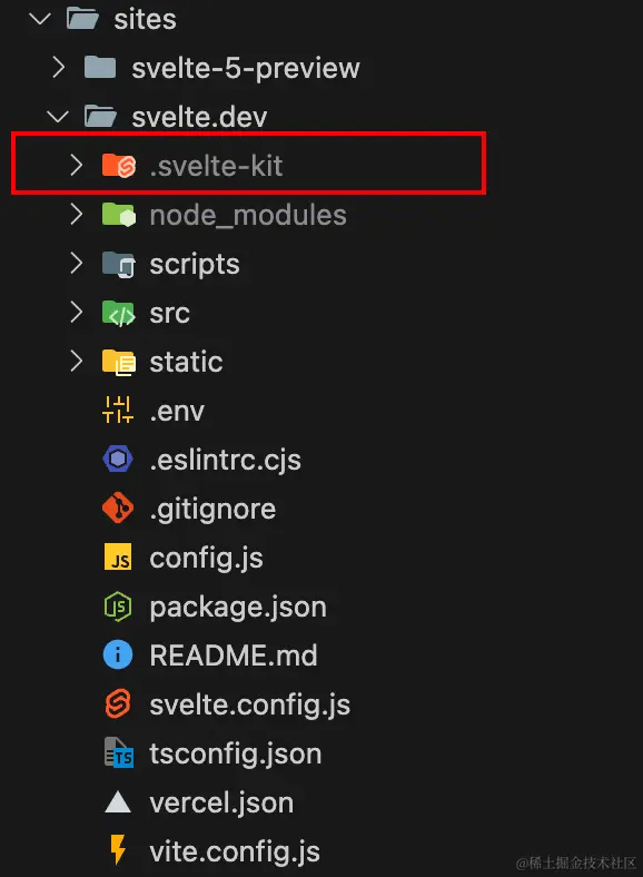 现在我们看到svelte.dev下已经有了.svelte-kit目录。