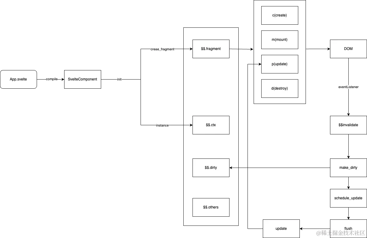 首先Svelte文件经过预处理,比如像要添加typescript支持等,然后调用compile,最后返回js.code。