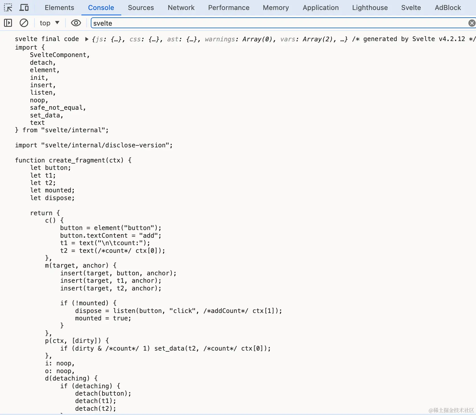 + console.log('svelte final code',