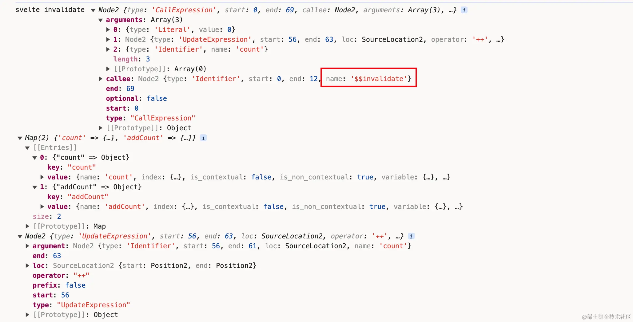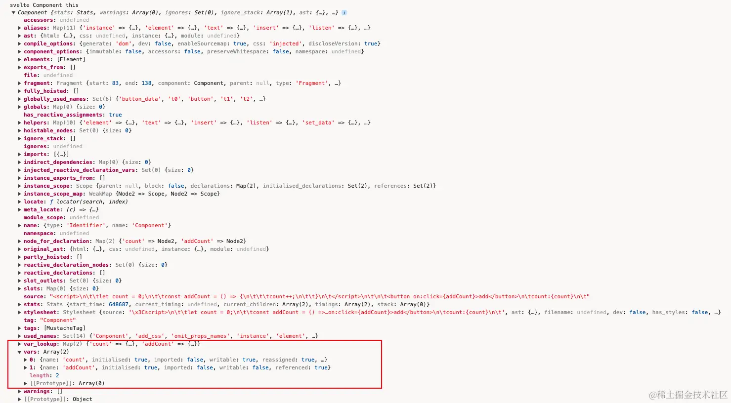 也就是我们点击按钮之后,会执行addCount方法,addCount内部的赋值语句已经被重新编译后,变成了$$invalidate()。