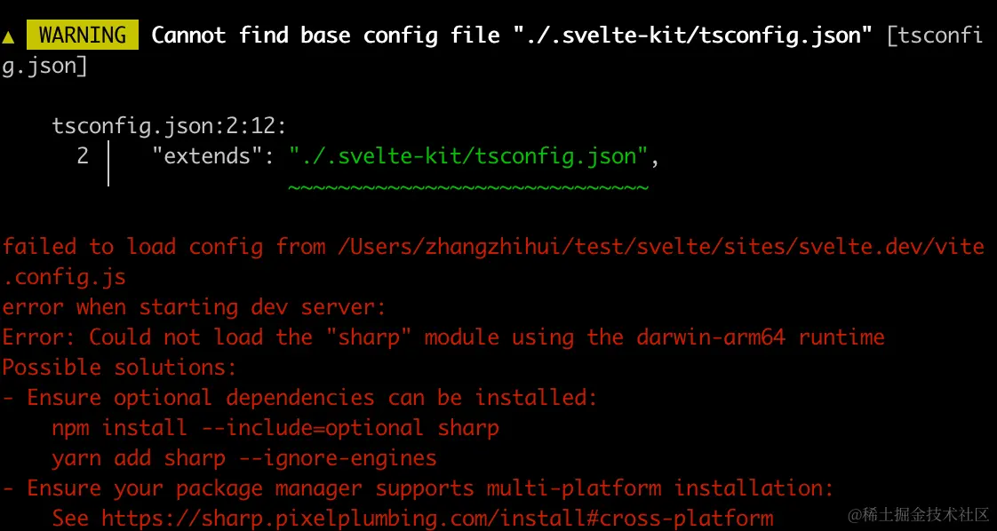 这是因为svelte.dev下缺少了一个.svelte-kit目录。