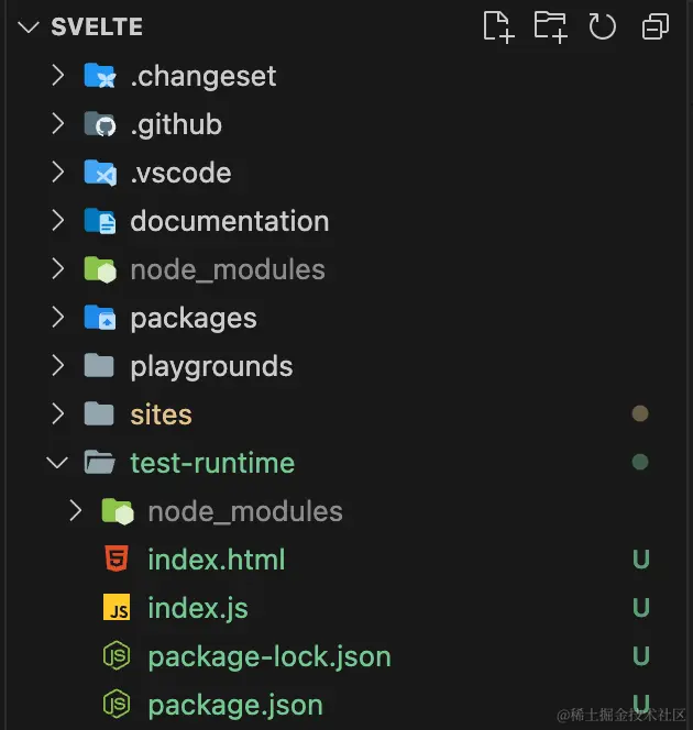 在svelte源码项目目录下新建一个目录叫test-runtime,新建一个index.html: