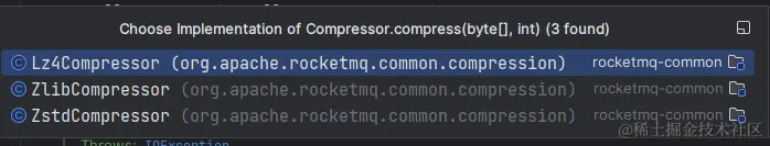 传入消息体以及压缩的等级,这里大佬们提供了三种压缩实现,分别基于三种不同的压缩框架