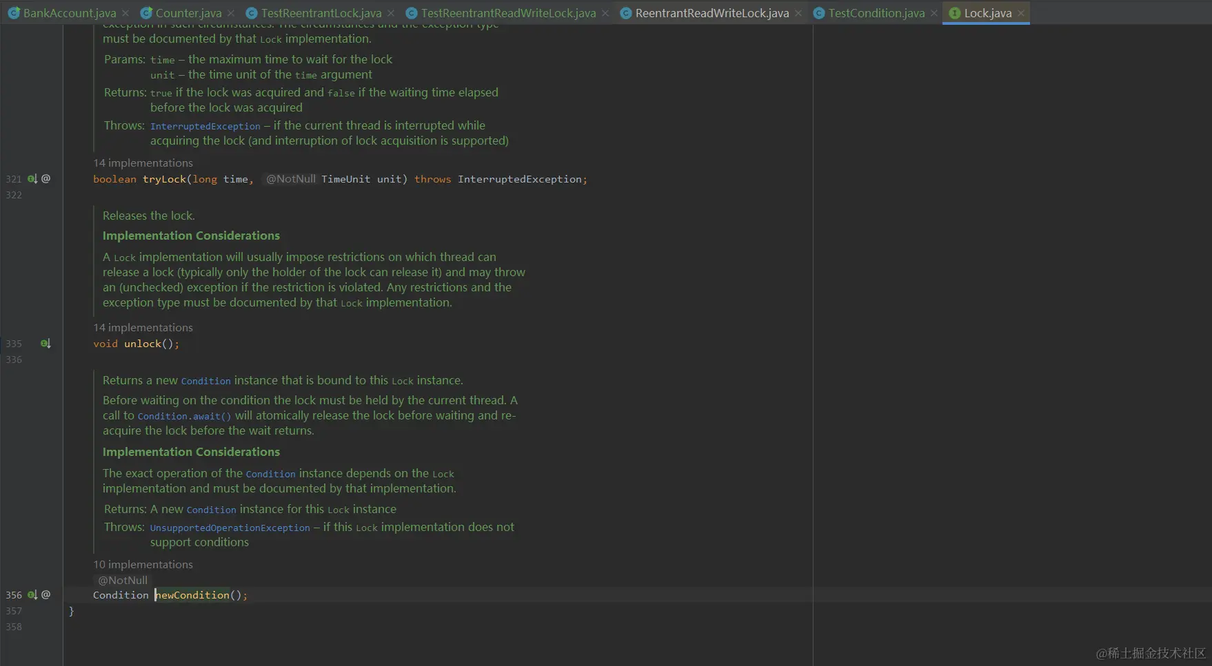 Locks和Conditions,它俩是Java并发API中的重要组成部分,它们提供了比传统synchronized关键字更为复杂和灵活的线程同步机制。这些工具类位于java.util.concurrent.locks包中,它们支持更细粒度的锁操作,有助于构建高效且易于管理的并发应用程序。