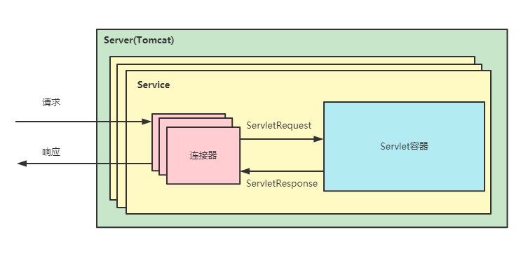 Tomcat 与外部世界的连接器,监听固定端口接收外部请求,传递给 Container,并将Container 处理的结果返回给外部。连接器对 Servlet 容器屏蔽了不同的应用层协议及 I/O 模型,无论是 HTTP 还是 AJP,在容器中获取到的都是一个标准的 ServletRequest 对象。