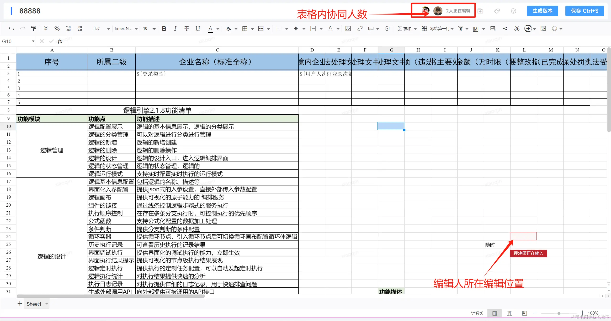 支持富文本、表格、Excel、word多人在线协同编辑,团队成员可以同时对同一文档进行编辑,即时看到彼此的编辑或者修改内容,解决跨部门之间的协作问题。