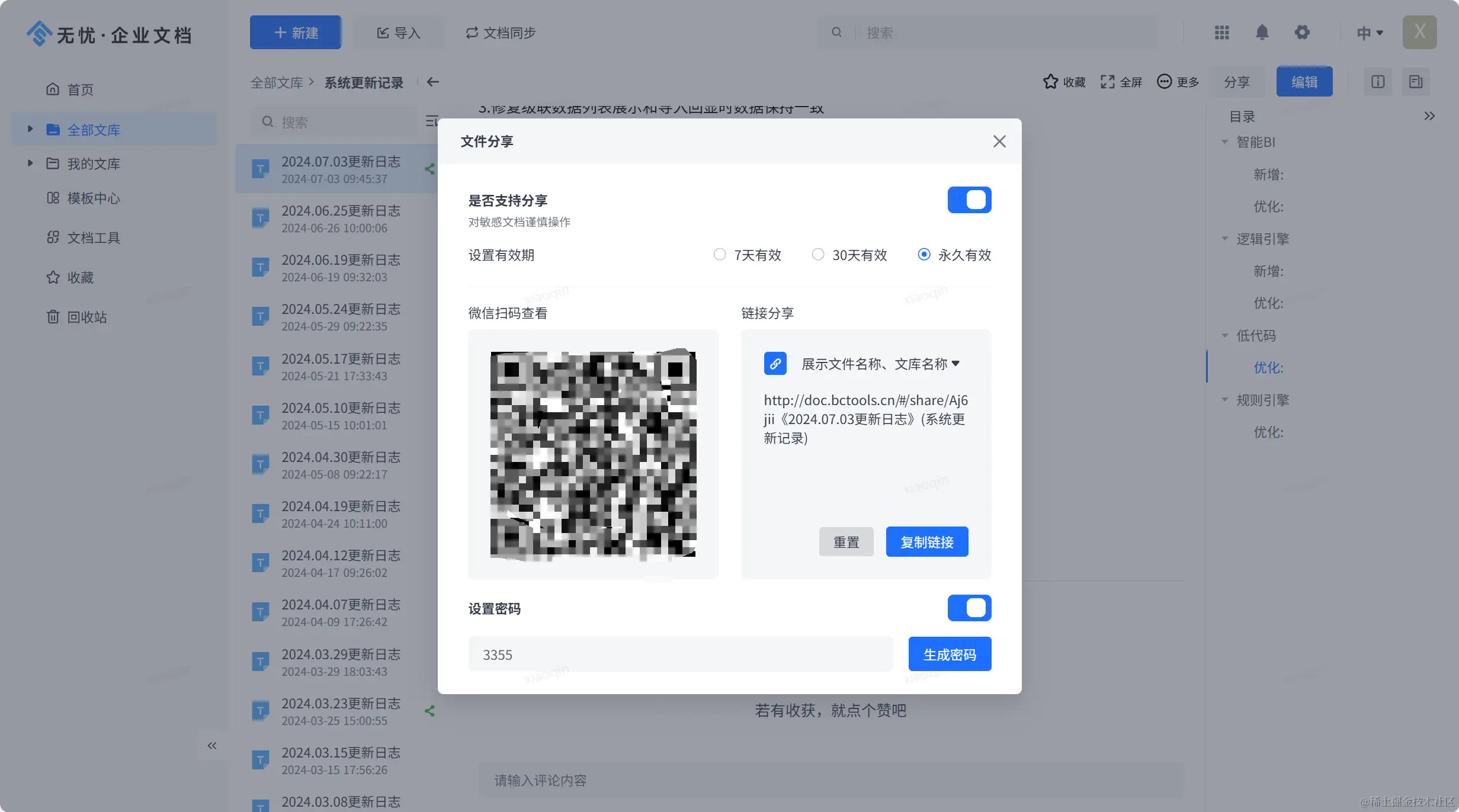 文档支持多种方式分享,可设置分享有效期,可加密分享