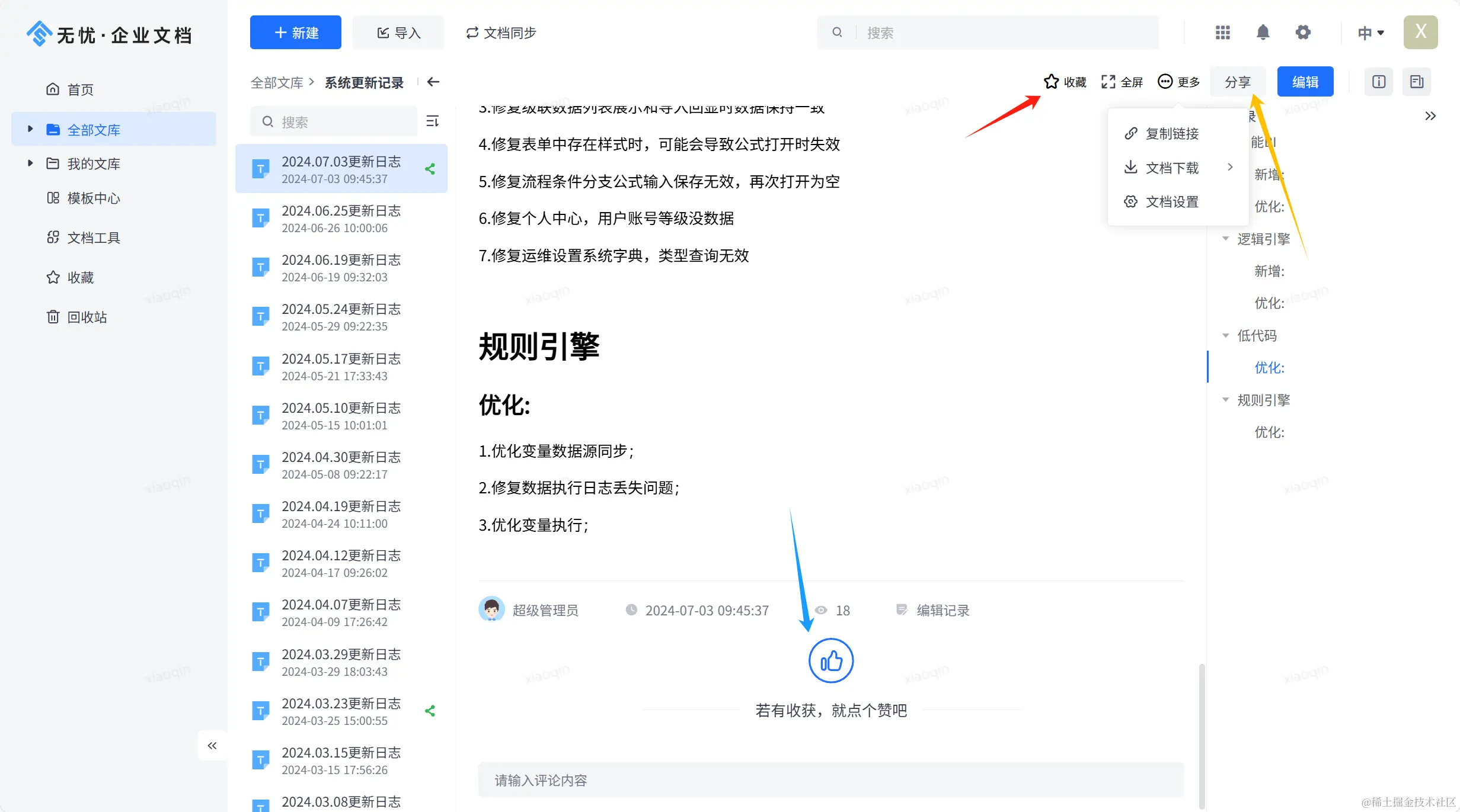 无忧企业文档的产生还源于市场对高效、安全、易用的文档管理系统的需求。无忧企业文档通过私有化部署、精细的权限管理、全文搜索引擎、版本控制、多人在线实时协同编辑等功能模块,满足了企业对文档管理的全面需求。同时,无忧企业文档还针对企业用户的特定场景和需求提供了定制化和源码版,使其更加符合企业用户的实际使用需求。