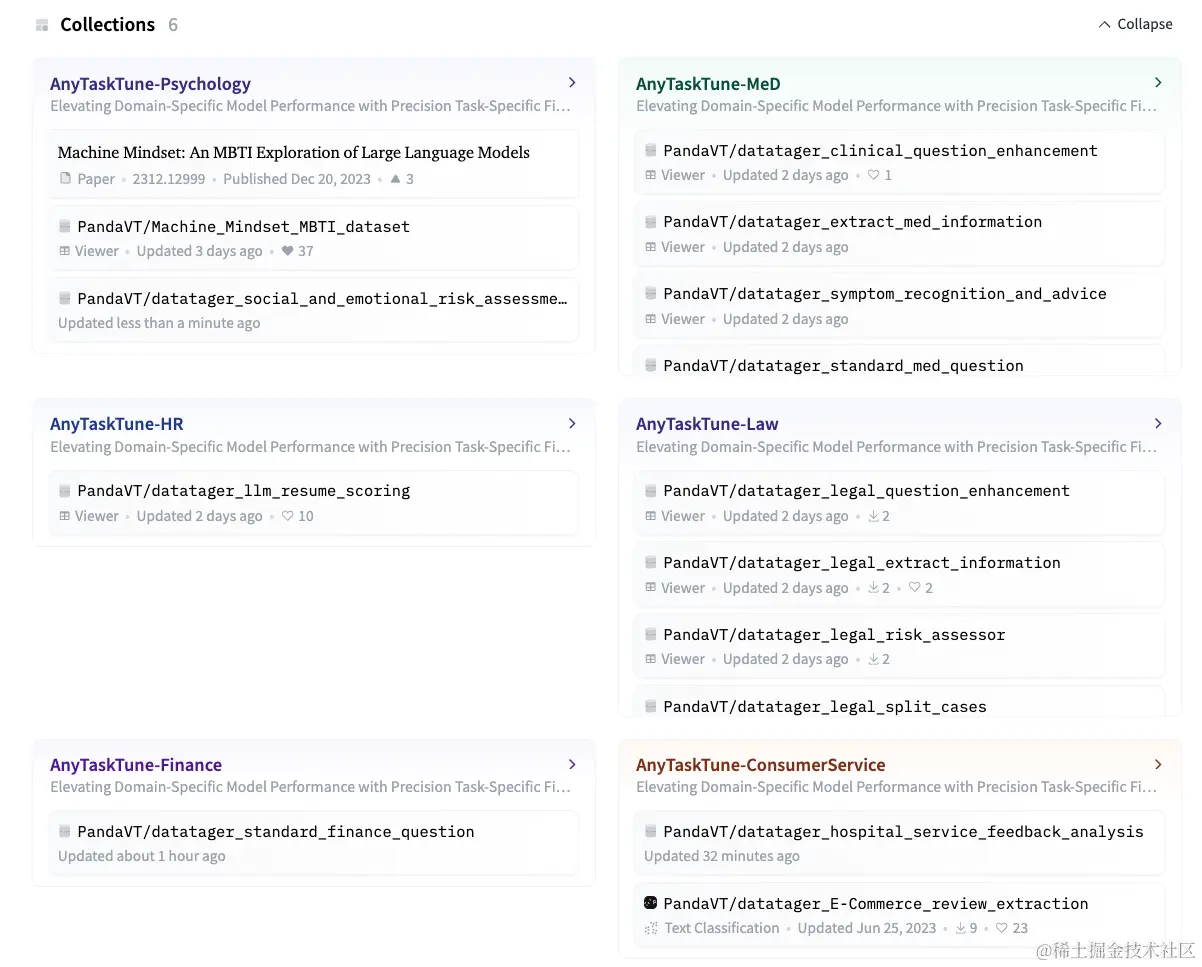 为了让更多从业者意识到任务级别的数据集的重要性,我们在医疗、金融、心理、电商等多个关键领域,设计了适应不同业务需求的十余种子任务并全部开源,可以选择使用这些数据集来训练模型,让模型特定地具备这方面的能力。