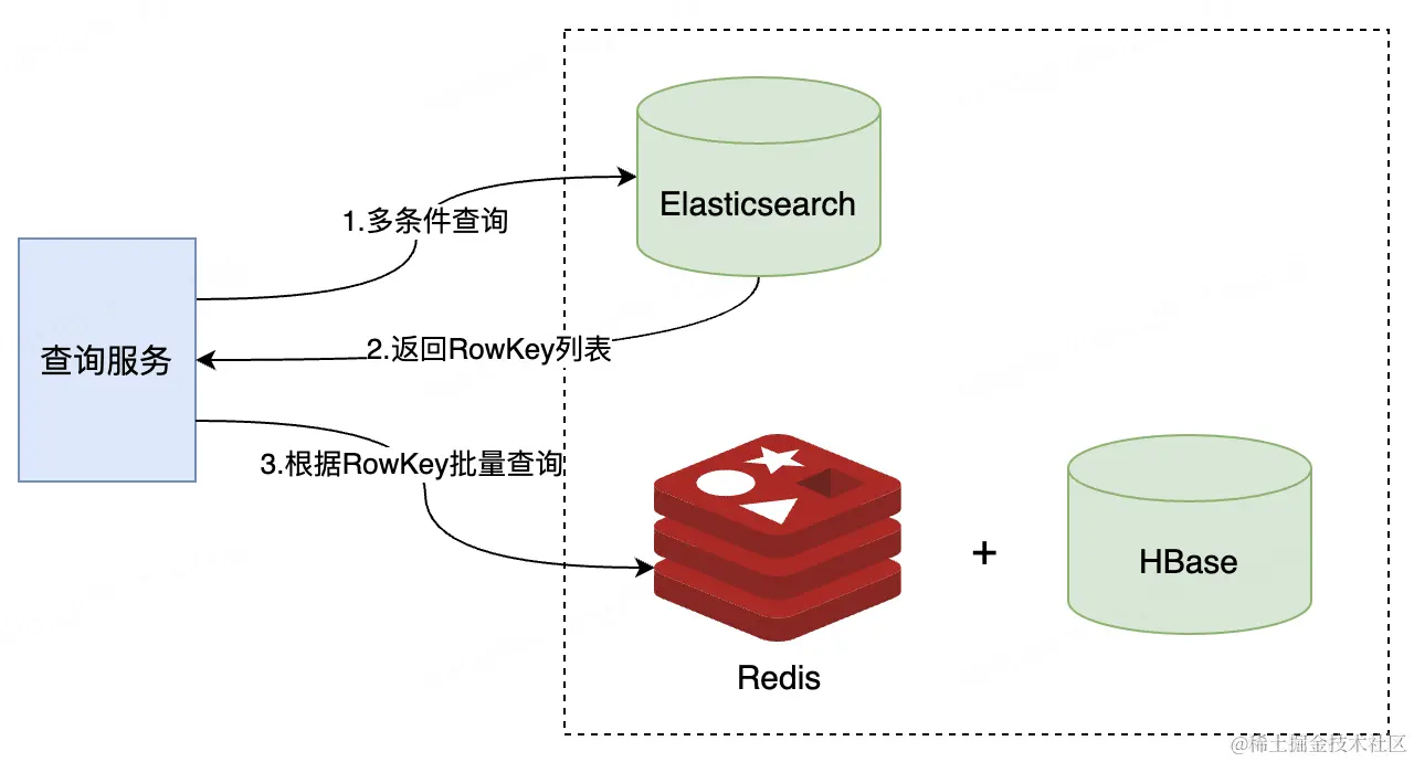 HBase底层架构的设计决定了HBase对高并发查询场景支撑不足,为了扛住高并发场景,也需要引入缓存,解决方案就是HBase + Redis。若此时查询复杂度也高,则再引入ES,解决方案就变成了HBase + Redis + ES。