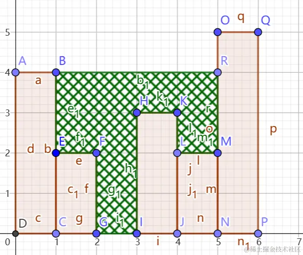 - 计算并累加雨水:对于当前位置,雨水的高度是由Math.min(maxLeft, maxRight)决定的,减去当前柱子的高度,就是这部分可以储存的雨水量。累加这部分雨水到总雨水中。
