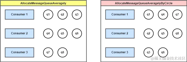 - AllocateMessageQueueAveragely:(默认)平均分配,推荐使用。