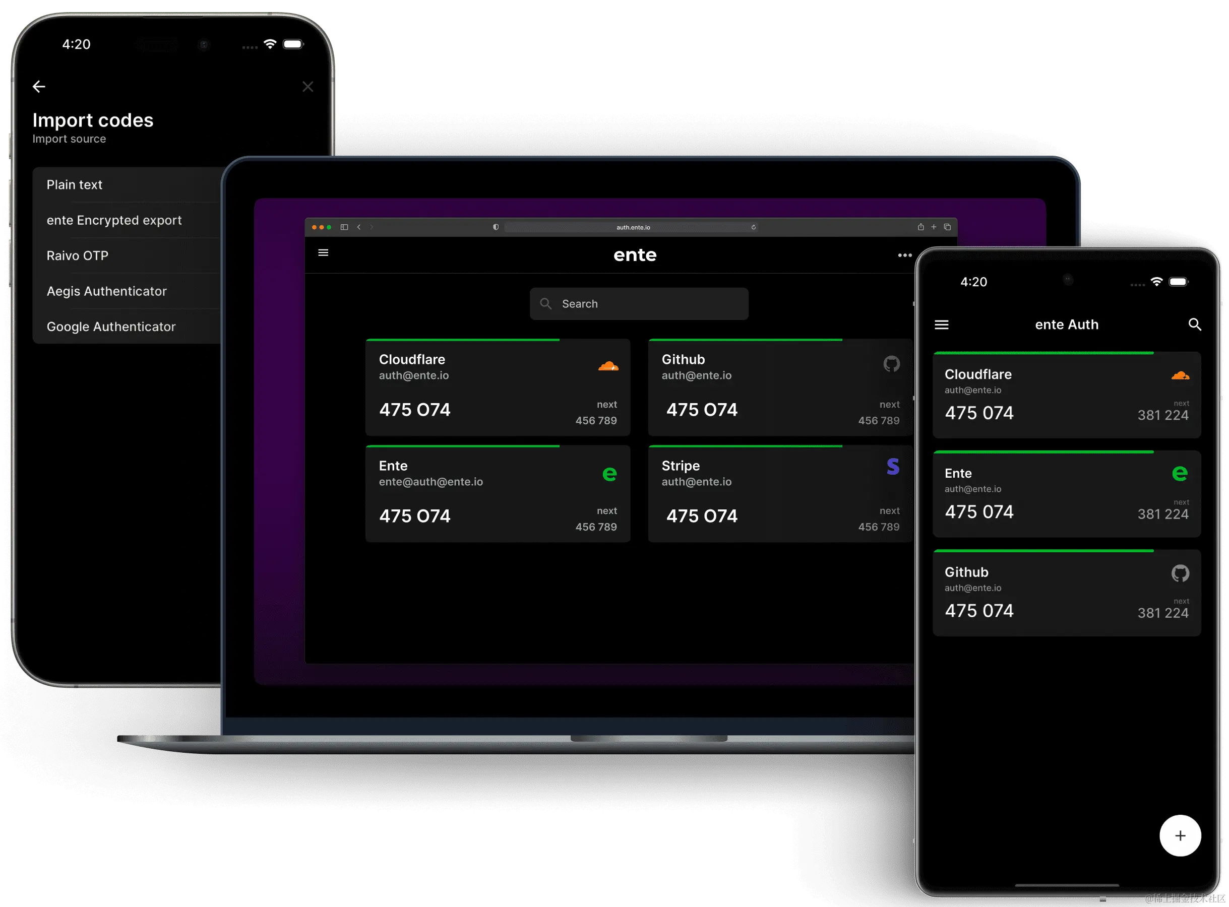 该项目是提供端到端加密的服务,内含基于此服务(Ente)的两款产品,它们分别是云相册(免费试用)和 2FA 验证器(永久免费)。永久免费的 Ente Auth,它可帮助你在移动设备上生成并存储两步验证 (2FA) 令牌。