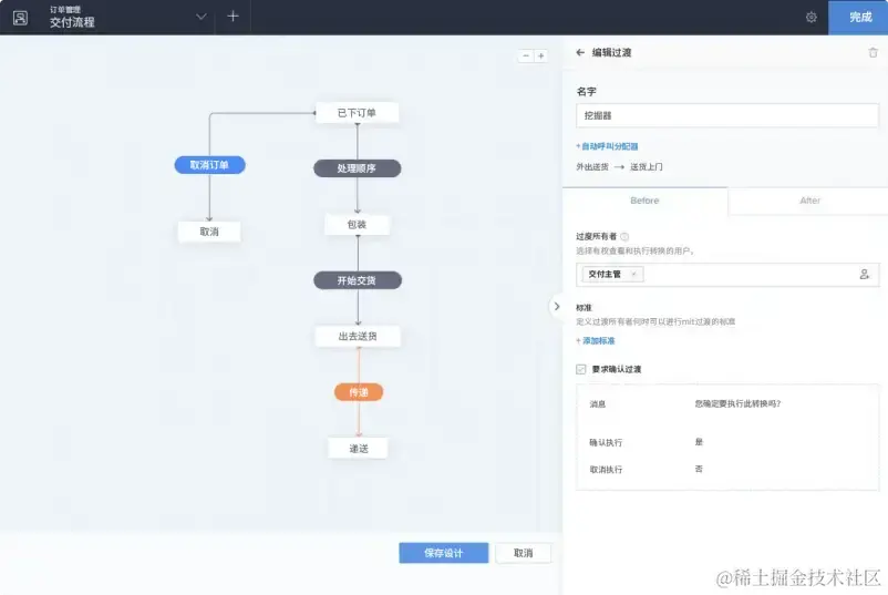 设计师和管理员在此页面设计、编辑和管理业务流程,包括查看流程图、配置流程参数和设置规则。