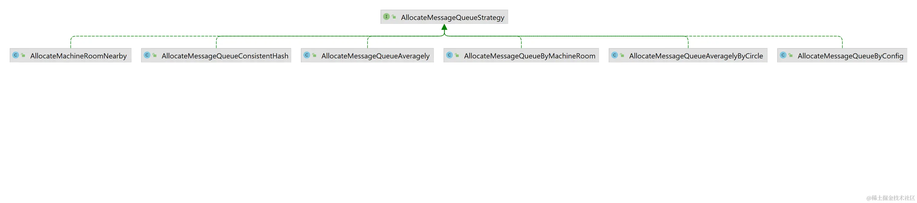 此外还有一个重要的域即重分配策略类 allocateMessageQueueStrategy,同一消费组中的每个消费者应保持一致,以保证重分配的结果一致。