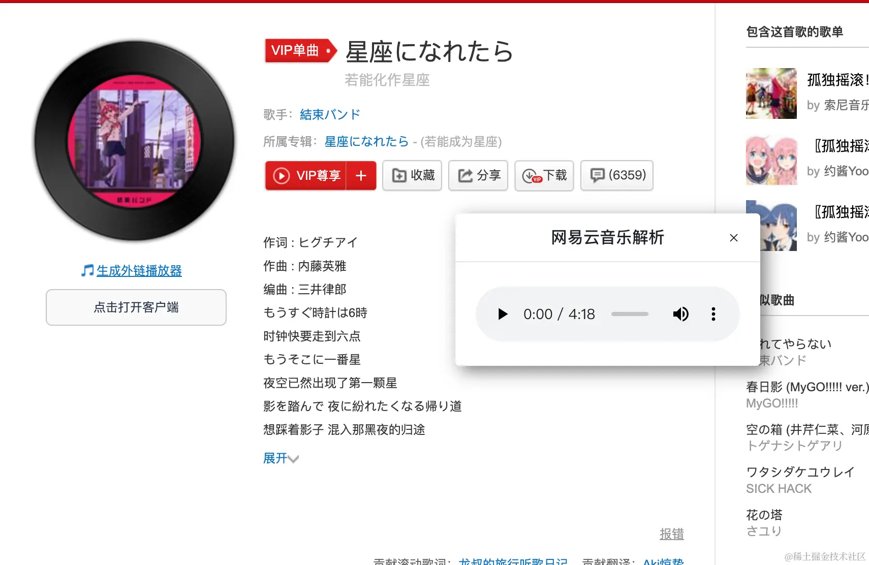 另外还支持网易云音乐解析,进入到网易云音乐界面即可帮你自动解析音乐,并支持一键下载