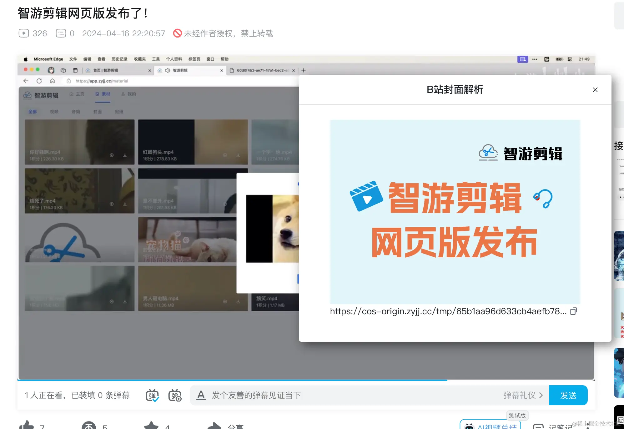 点击后稍等一会就可以自动帮你解析B站封面了,这样就不需要手动输入视频地址了