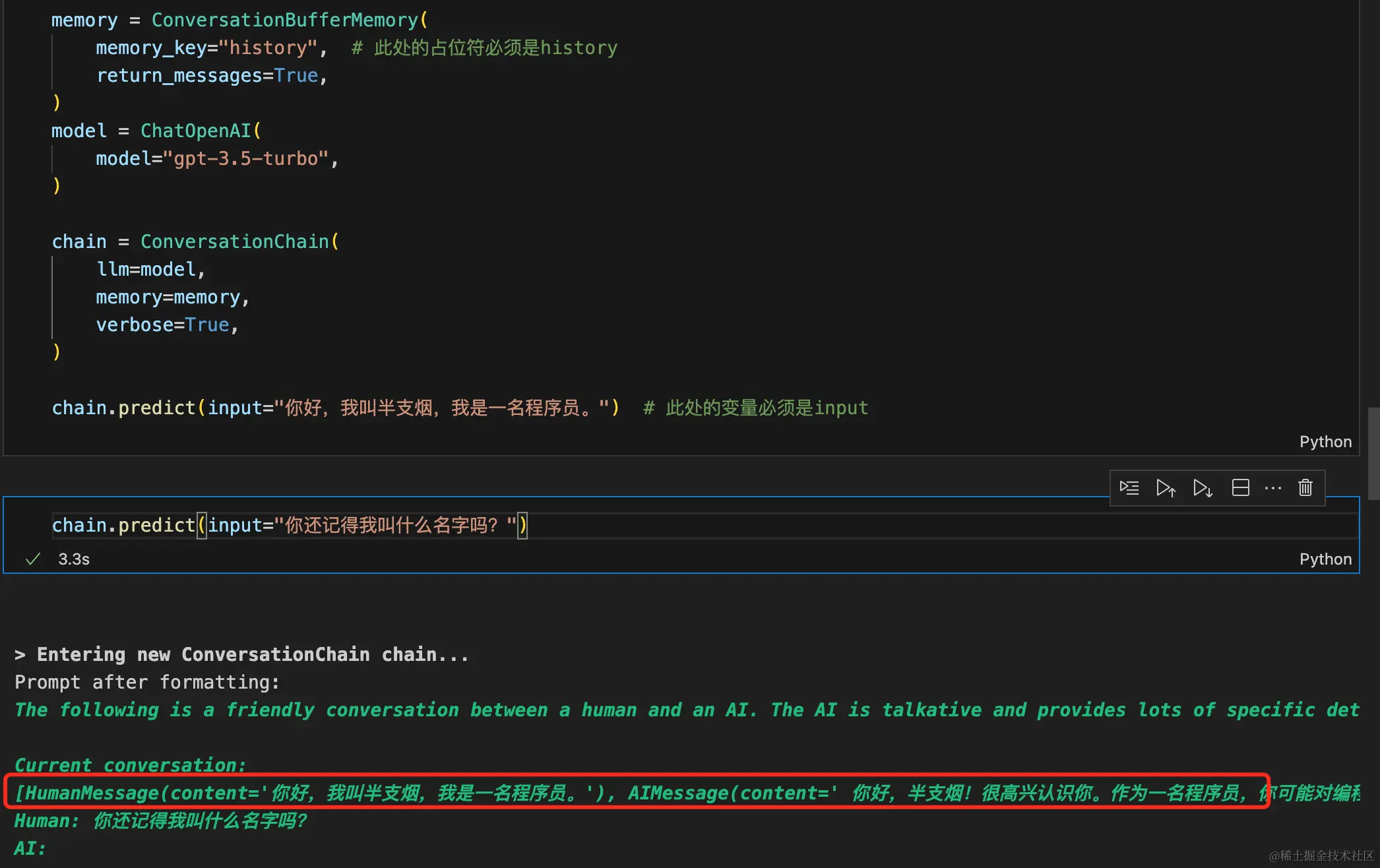 3.2. LLMChain+ConversationBufferMemory使用示例
