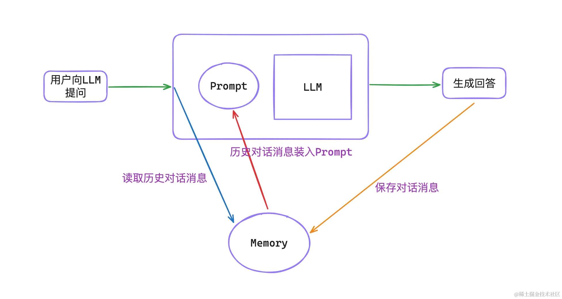 此时,已经给LLM安装上记忆了,免去了我们写那3步核心的模板代码。