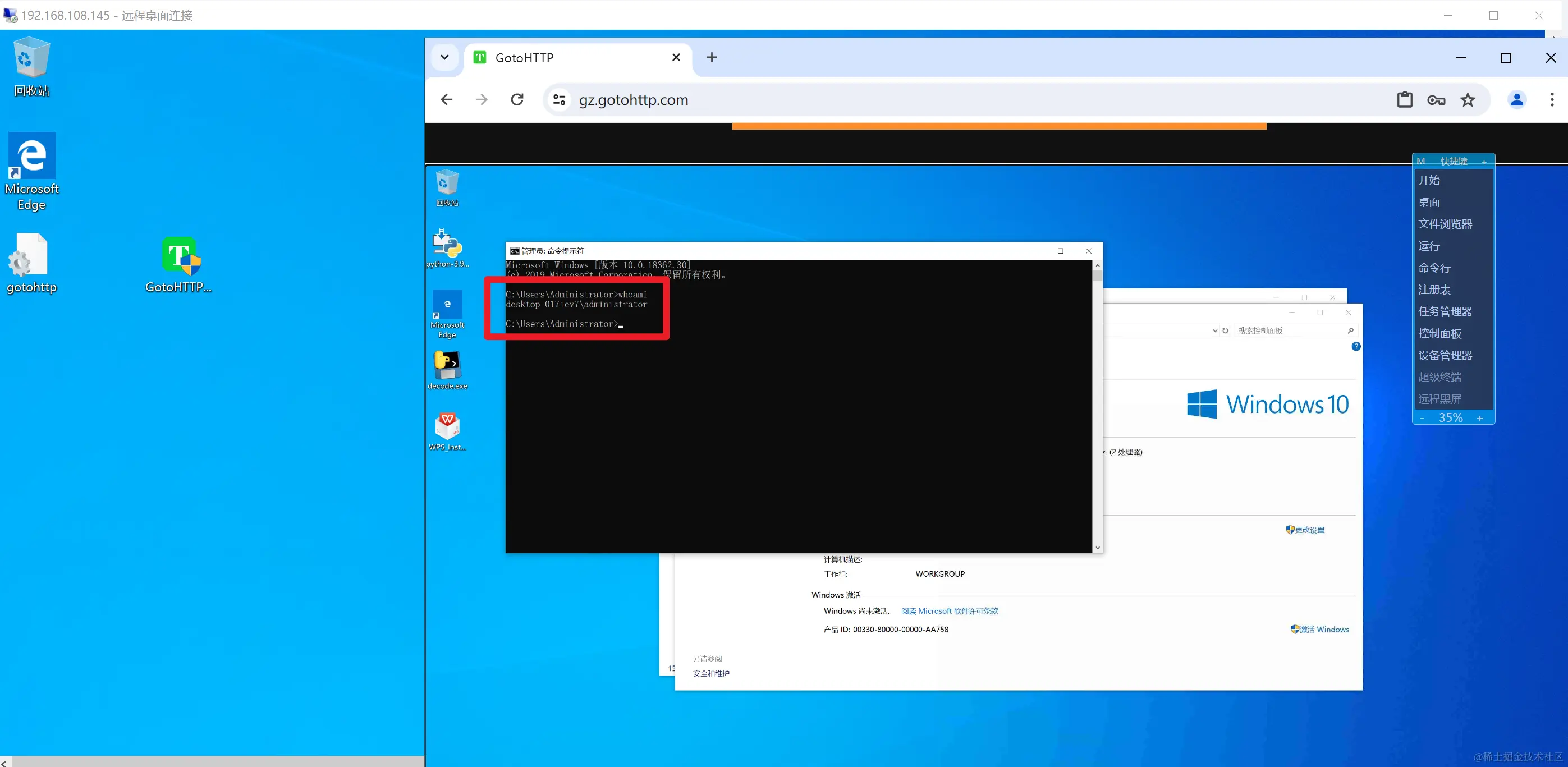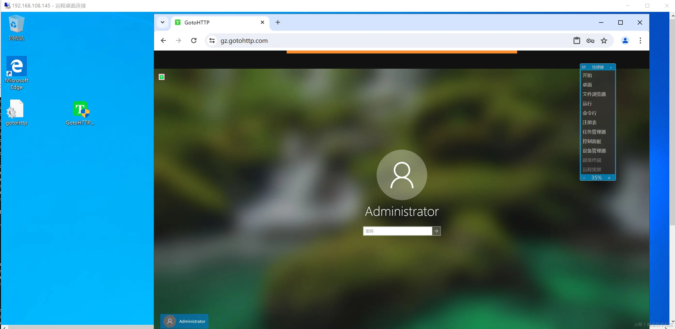 在攻击机本地进行GotoHTTP远程桌面时候,发现已经成功接管了administrator的实时桌面(由于GotoHTTP是以管理员身份运行的故显示的administrator桌面)