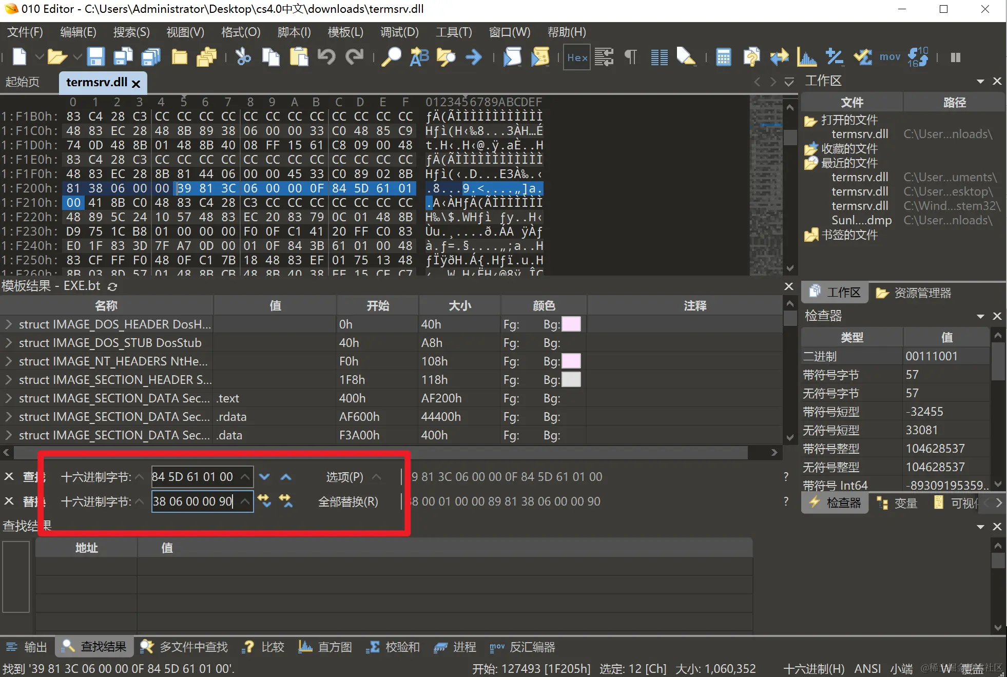 接下来将对方的c:\Windows\System32\termsrv.dll文件下载至本地