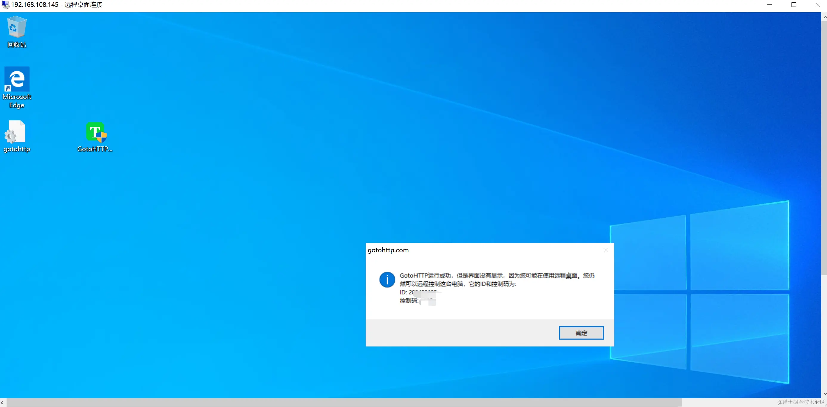 借助Windows的特性,直接在新建隐藏管理员桌面安装轻量级的远控桌面软件并运行(这里以GotoHTTP为例)