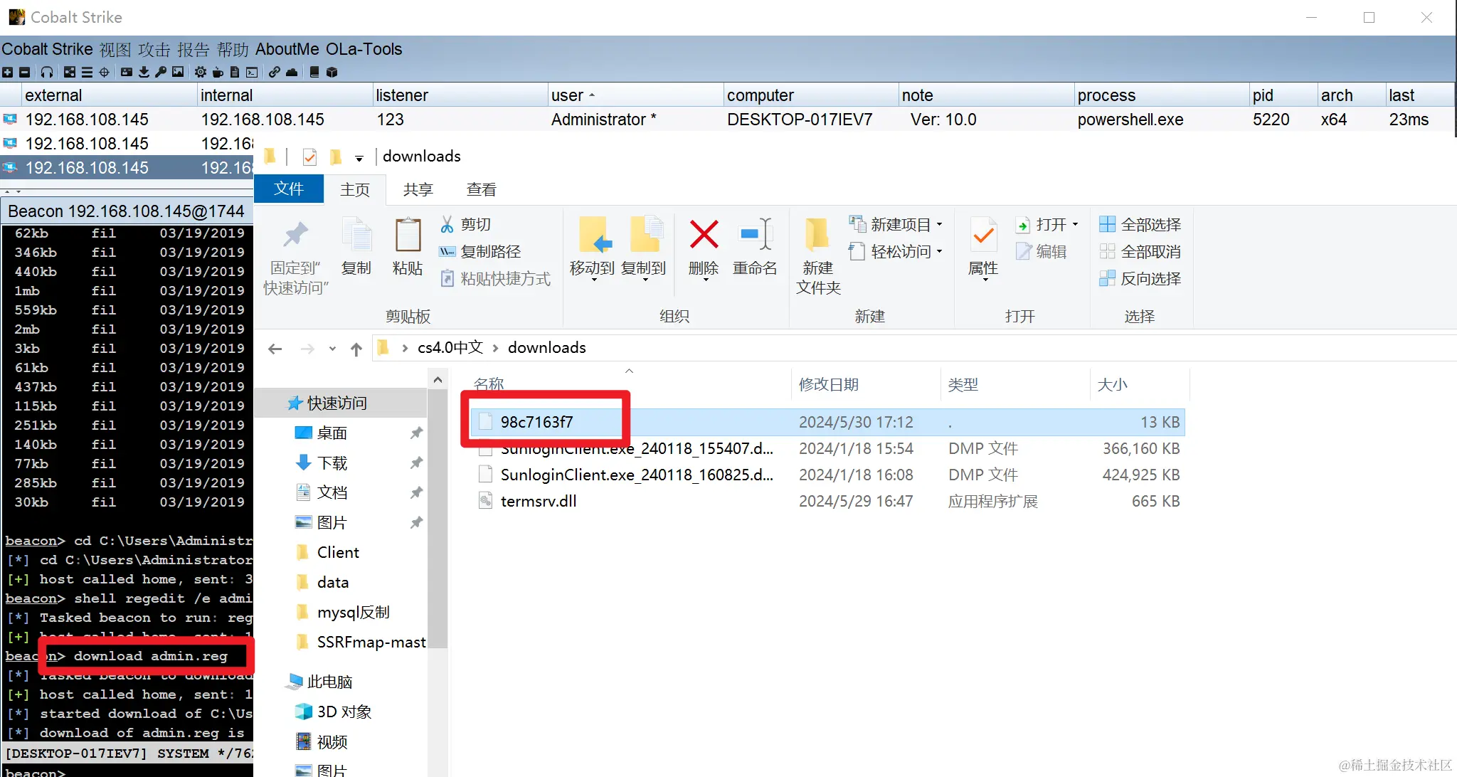 将注册表文件下载到本地方便编辑(下载后默认在本地CS目录的下的download文件夹下,文件下载后需要重命名)