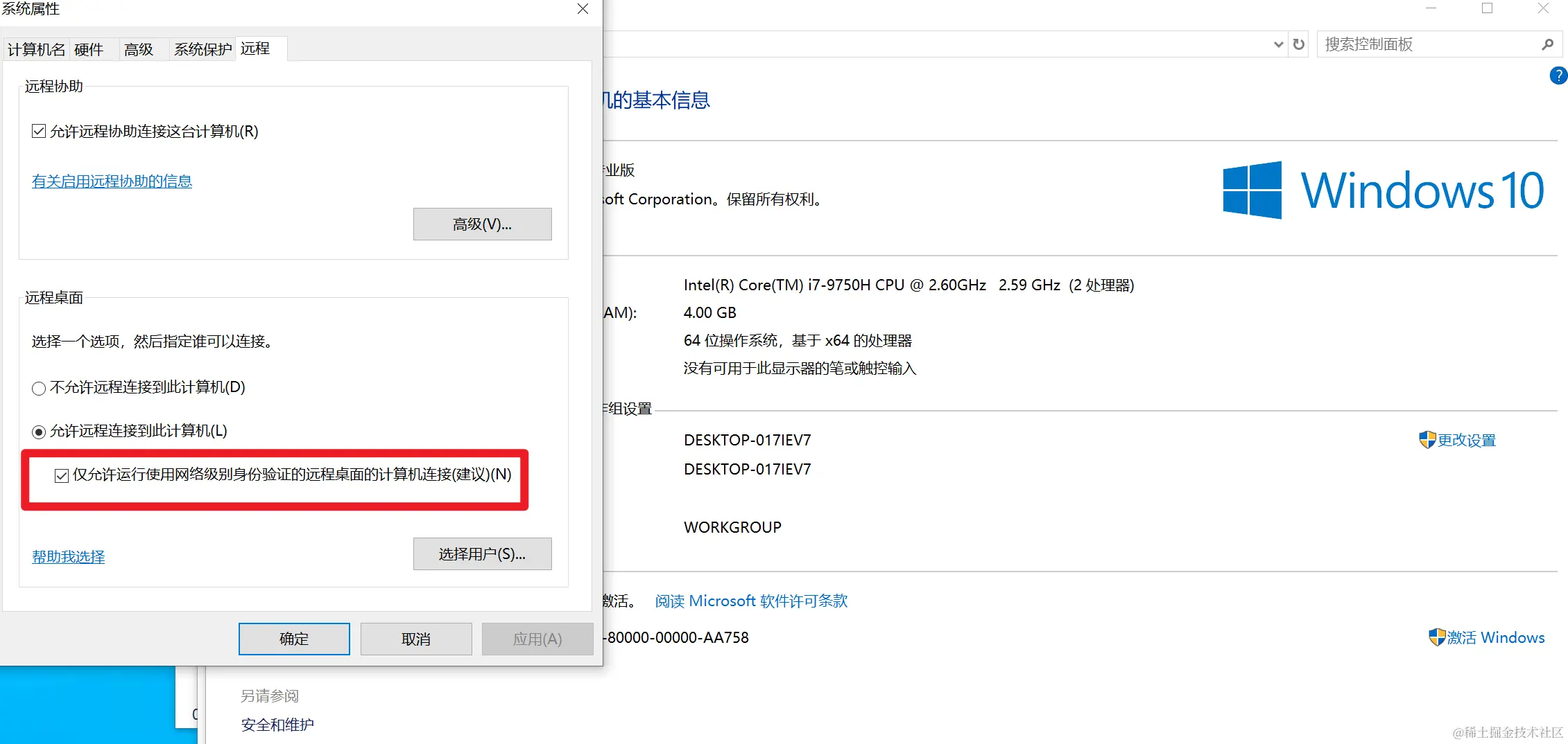 有些运维人员会勾选”仅允许使用网络级别的身份验证的远程桌面的计算机连接”选项,我们也可以通过注册表进行关闭,避免影响连接(开启同理0替换成1)