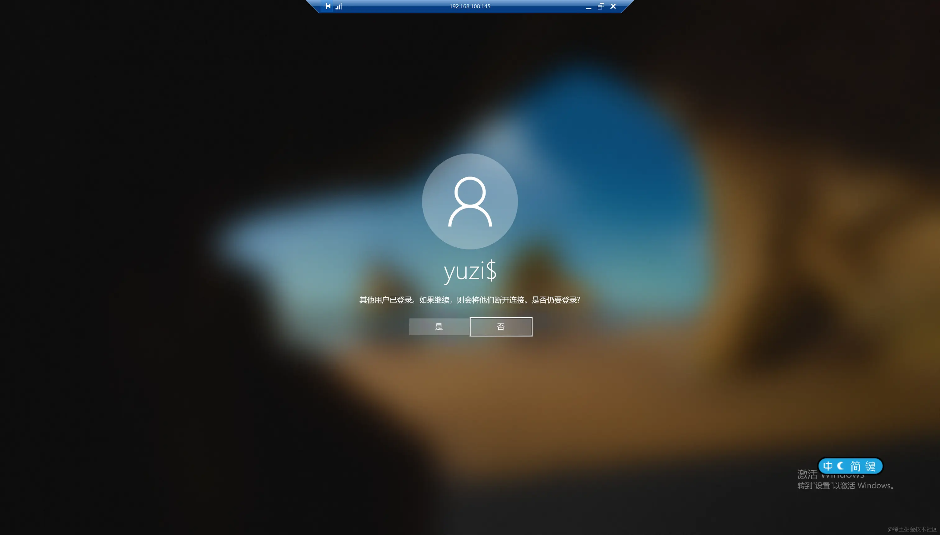 若遇到对方已有用户在线,可能会出现以下界面(Windows sever版本默认支持多用户同时在线,Windows其他版本不支持)