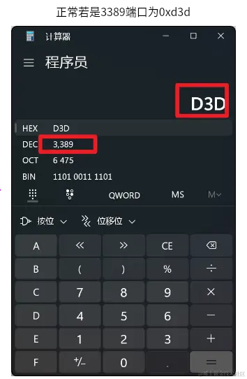 正常若是3389端口为0xd3d(默认是十六进制表示)