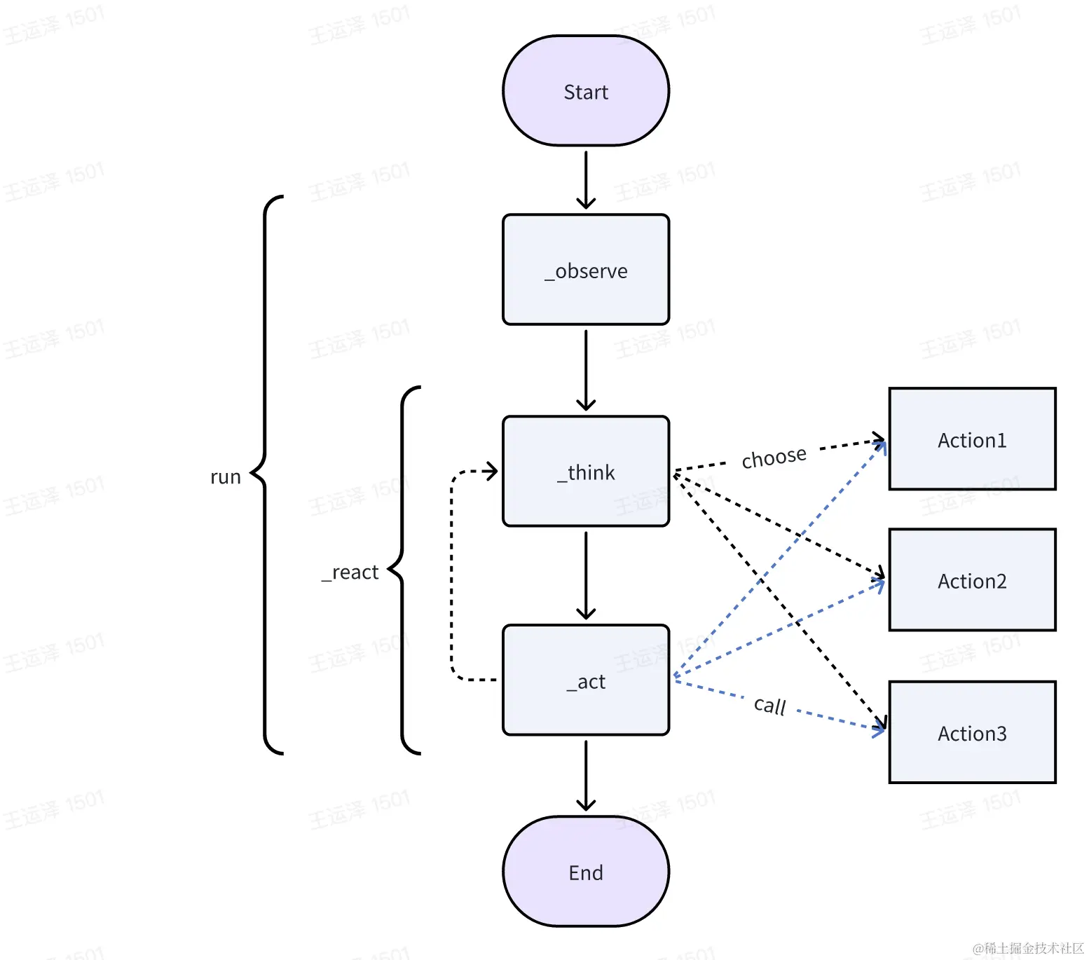 - 行动(Action):规定了这个智能体能做什么,还有它能使用那些工具