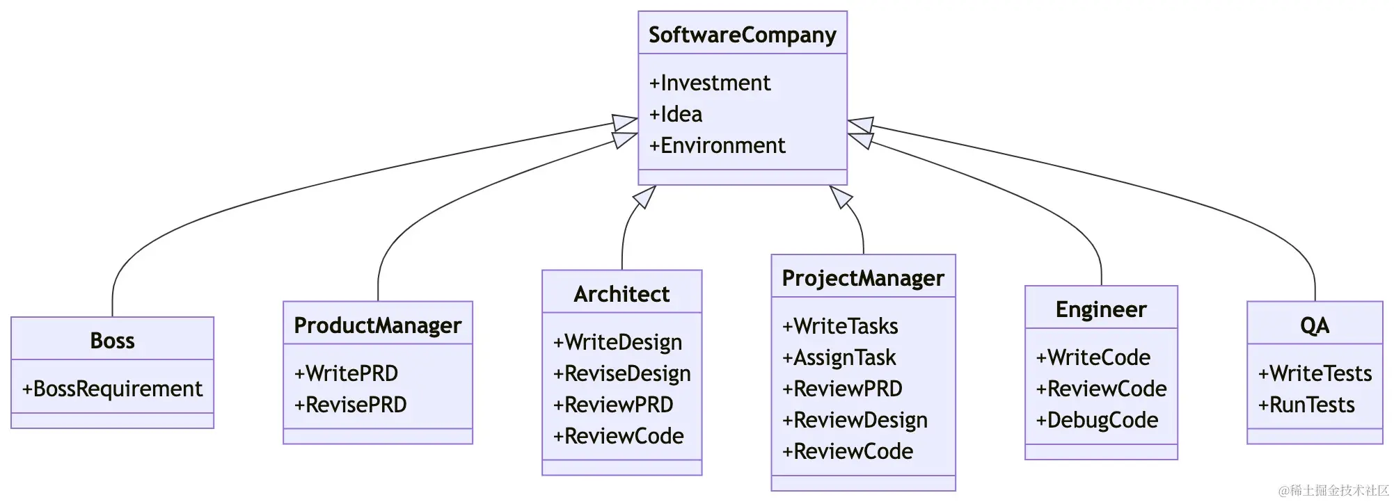 MetaGPT论文中使用了作为模拟软件公司作为例子,讲解它是怎么用到更大、更有用的任务上的。