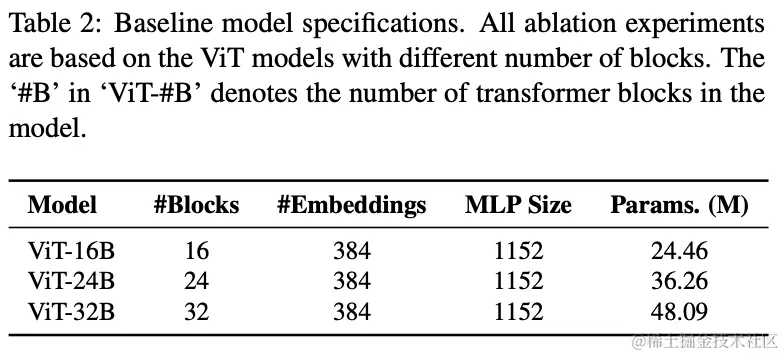 作者对ViT随深度增加而变化的性能进行了系统研究。首先根据DeiT的设置将中间层维度和MHSA的Head数量分别固定为384和12,然后堆叠不同数量的transformer blocks(从12到32不等)来构建不同深度的ViT模型。如前面所说的,作者惊讶地发现分类准确率会随着模型的深入而缓慢提高并快速饱和,在使用24个transformer blocks后提升就停止了。这一现象表明,现有的ViT难以从更深层次的架构中获益。