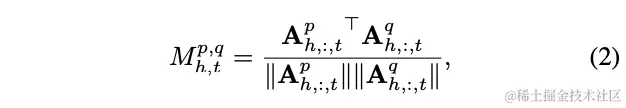 其中,是层p和q的注意力图之间的余弦相似度矩阵,每个元素衡量headh和tokent对应的层间注意力图的相似度。 是一个T维向量,表示输入token序列t对T个输出标记中的每一个的贡献程度。因此,提供了关于token的权重如何从p层变化到q层的度量手段。当等于1时,这意味着token序列t在层p和q中对self-attention的作用完全相同。