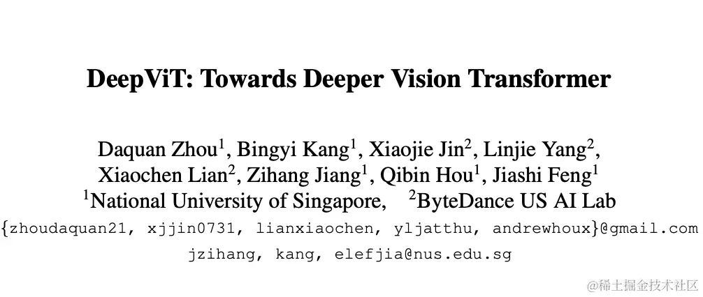 论文: DeepViT: Towards Deeper Vision Transformer
